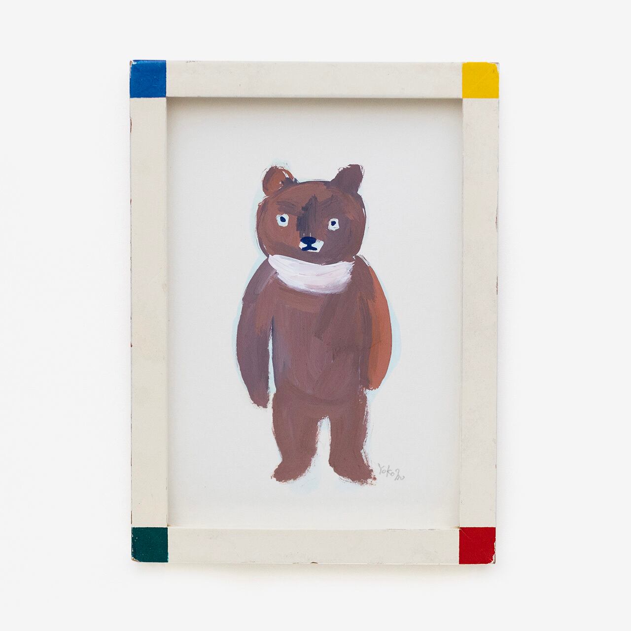 ミヤハラヨウコ クマがきた (ペインティングよる1点もの)オリジナルの原画+ビンテージフレーム