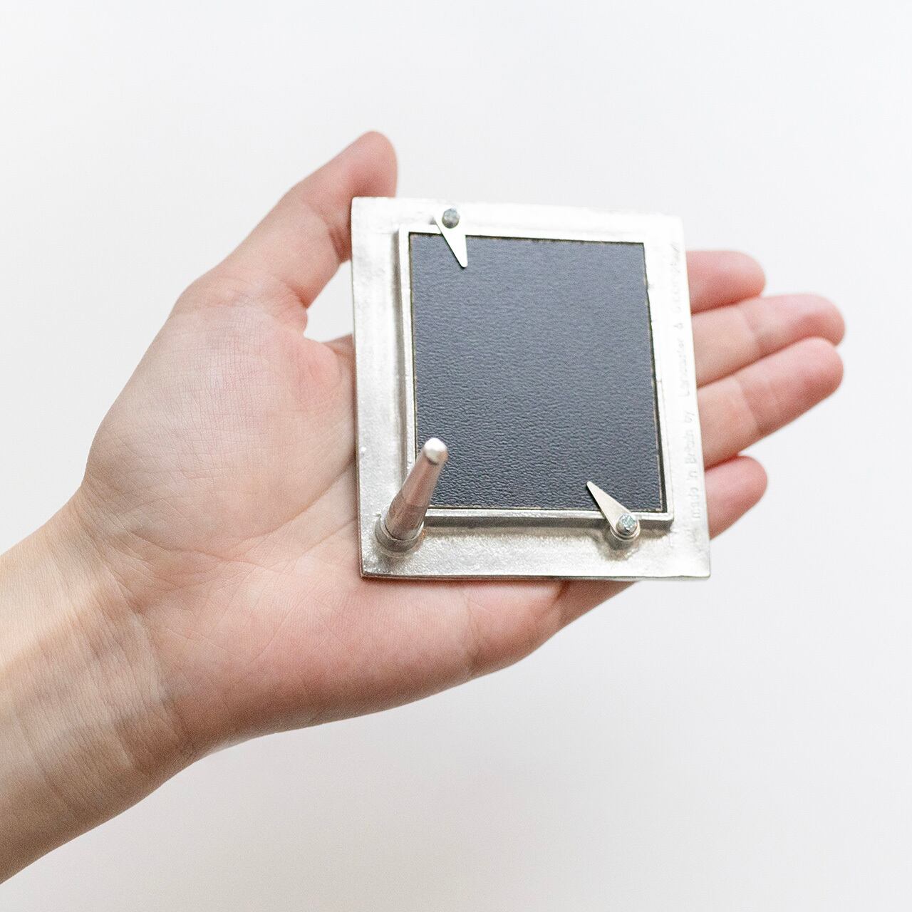 ※イギリス製のハンドメイドフレームです。ピューター(錫)と表記があります、とても小さいけれど、手にもつと、ちょっと重みがある、未使用品のフレームです。机の上などに置くように小さなスタンドがついています。壁には掛けられませんが、ご要望があれば、壁にかけられるように裏板に紐をつけることも可能です。