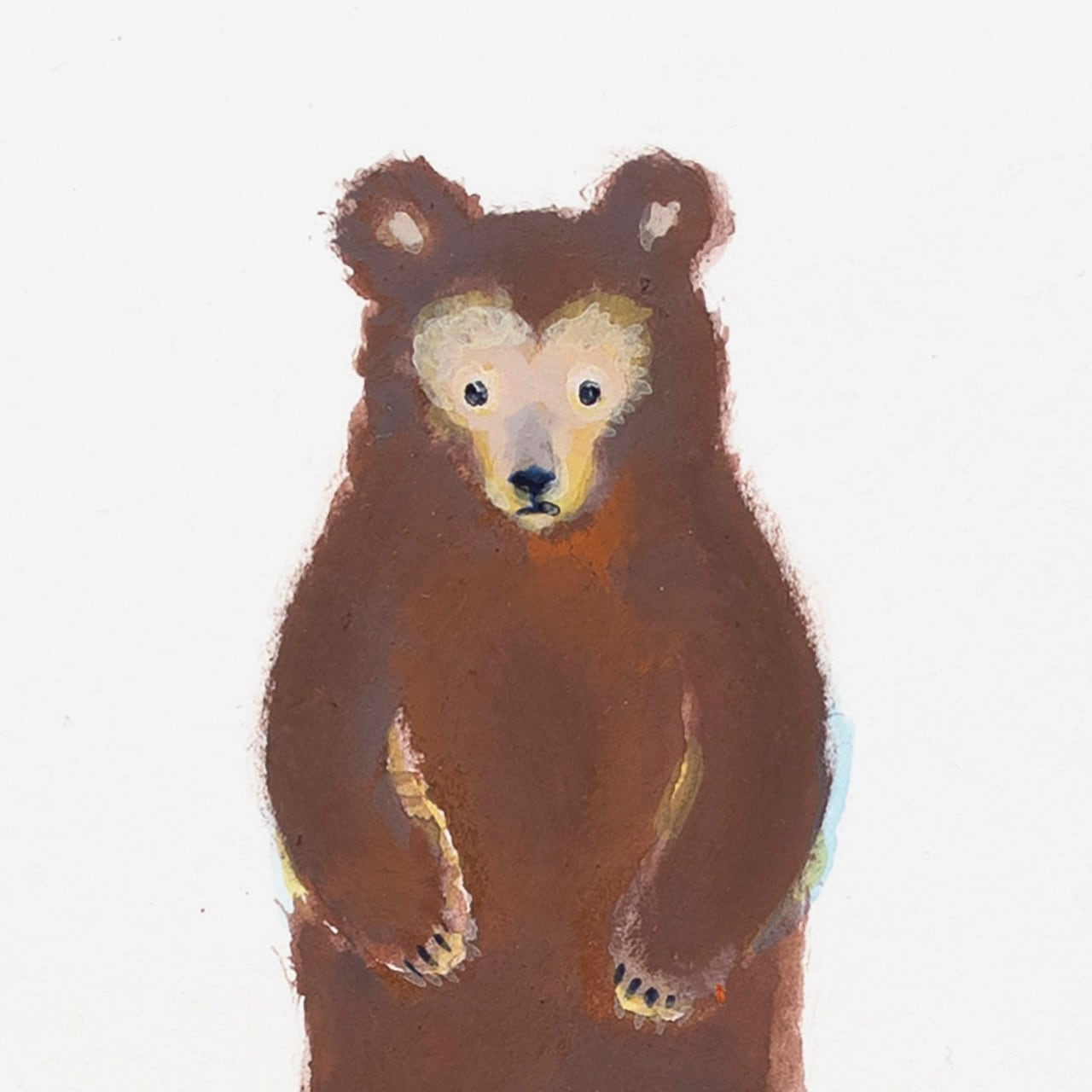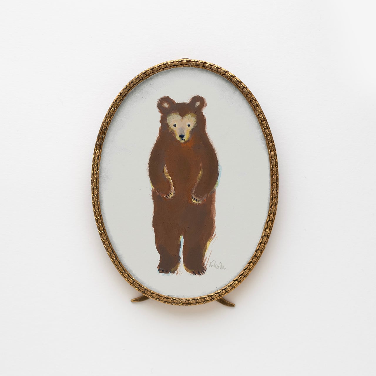 ミヤハラヨウコ クマをかぶったクマ (ペインティングによる1点もの)オリジナルの原画)+ アンティークのフレーム