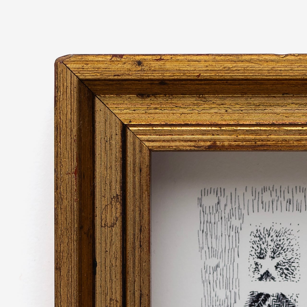 フランスのアンティークフレームを再利用しています。箔押しのような金がしぶいです。経年によるハゲやワレ、シミなどがみられます。ご注意ください。