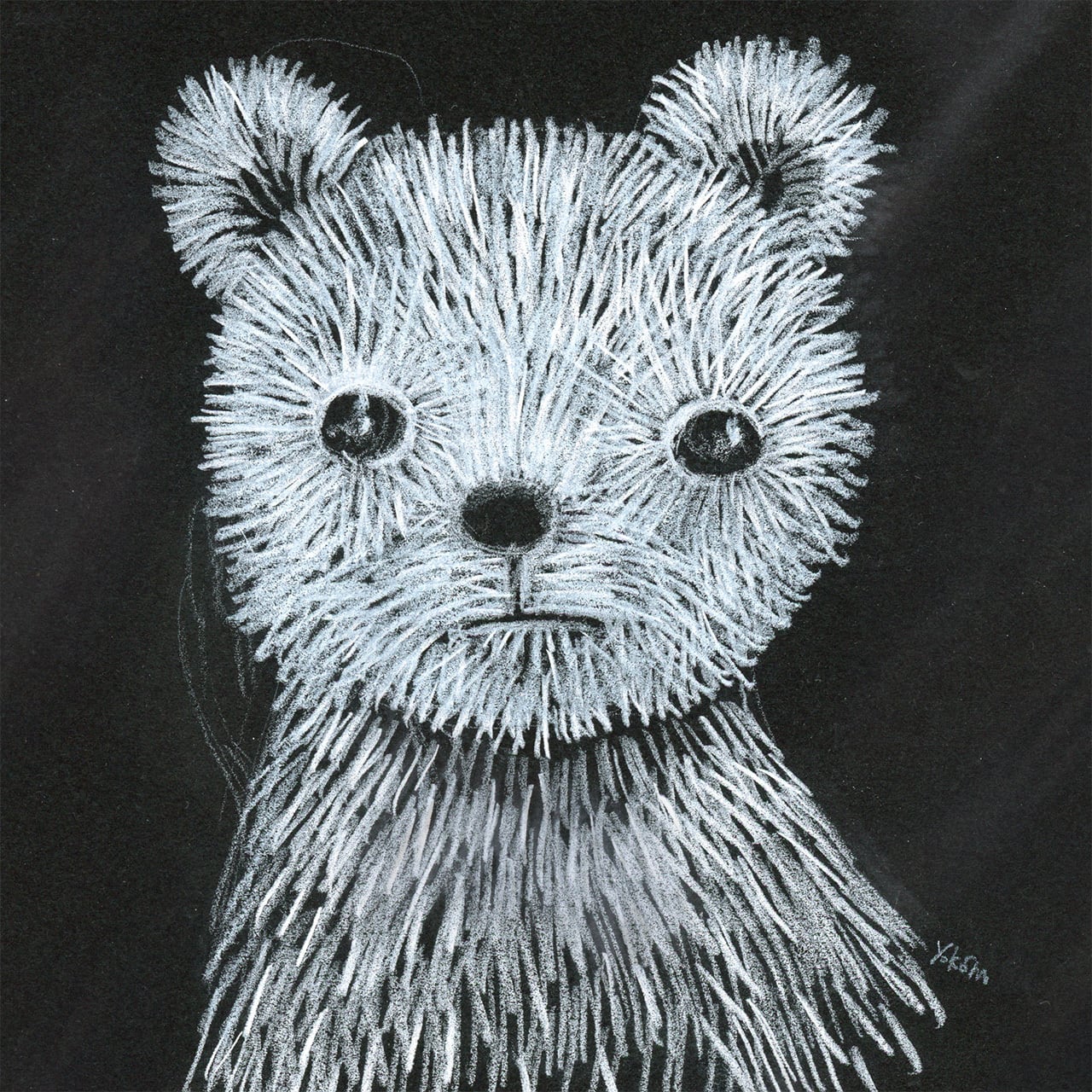 ※黒い紙に白のダーマトグラフで描かれています。この技法を使った絵としては珍しく、小さめの作品です。フランスのビンテージフレームを再利用しています。